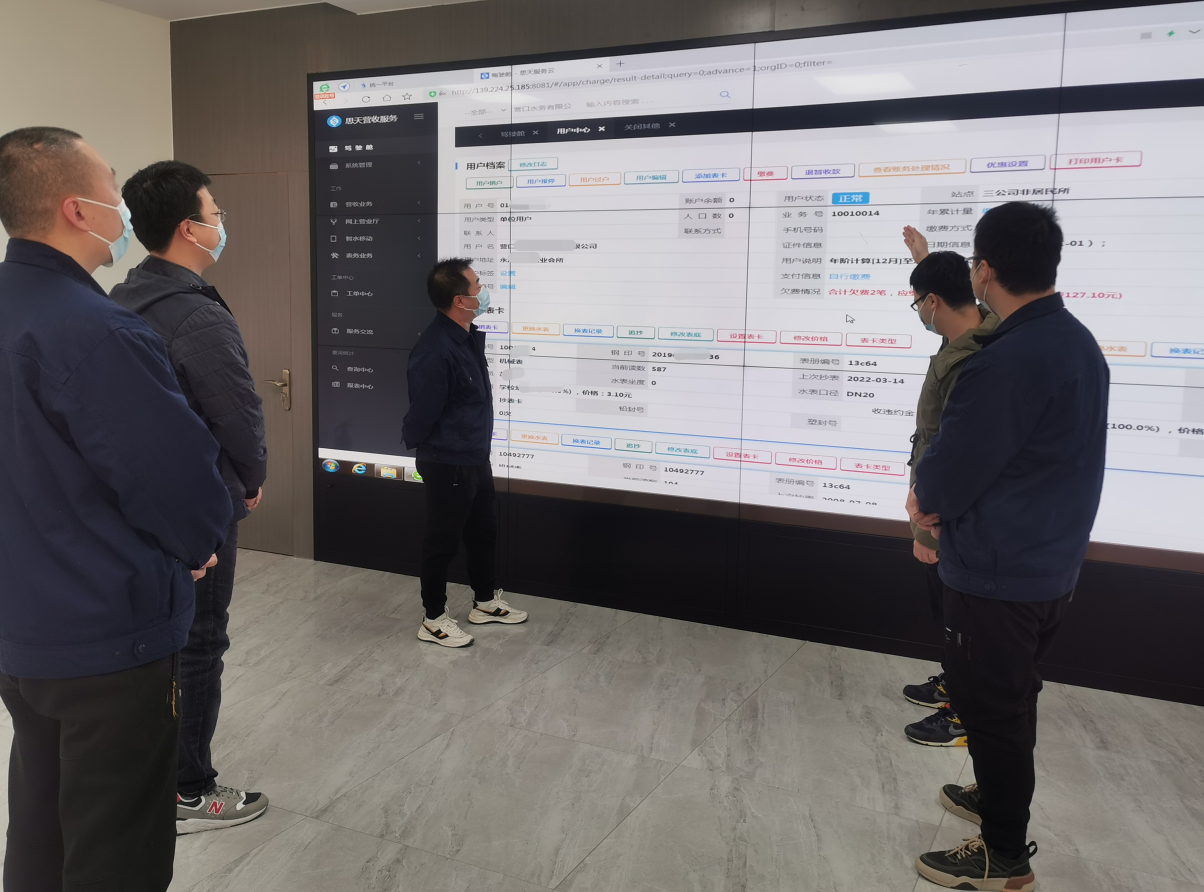 智慧水務項目營業(yè)收費系統(tǒng)上線進入關鍵階段,為不影響項目推進,5位信息管理員不分晝夜的對著電腦屏幕,接口調(diào)試、數(shù)據(jù)核對、聯(lián)網(wǎng)測試,保證了系統(tǒng)按時上線。