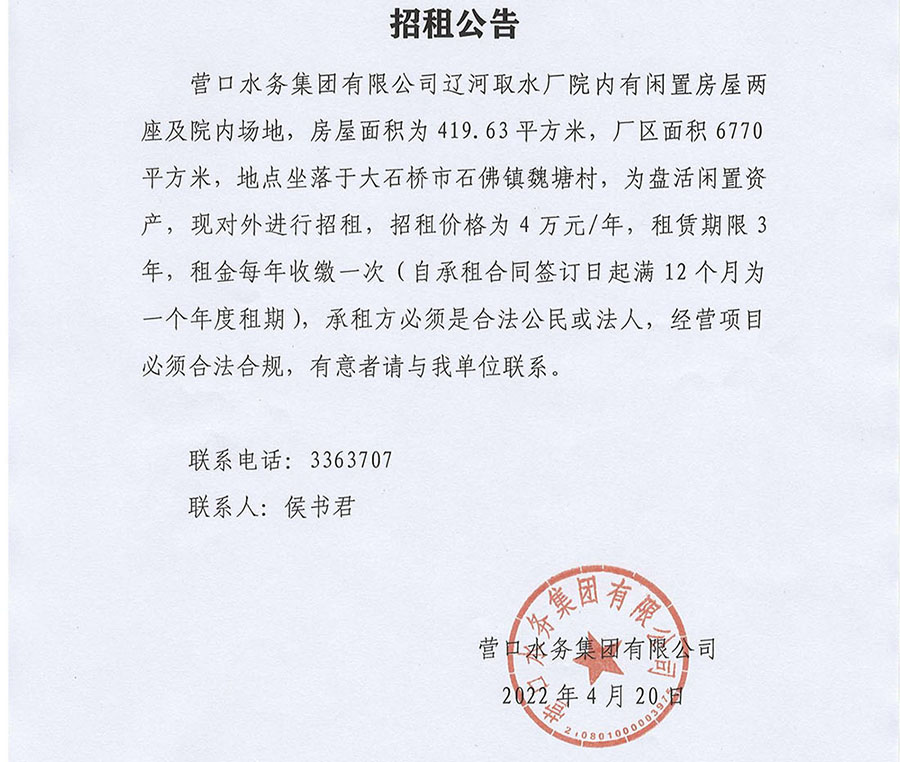 營(yíng)口水務(wù)集團(tuán)有限公司