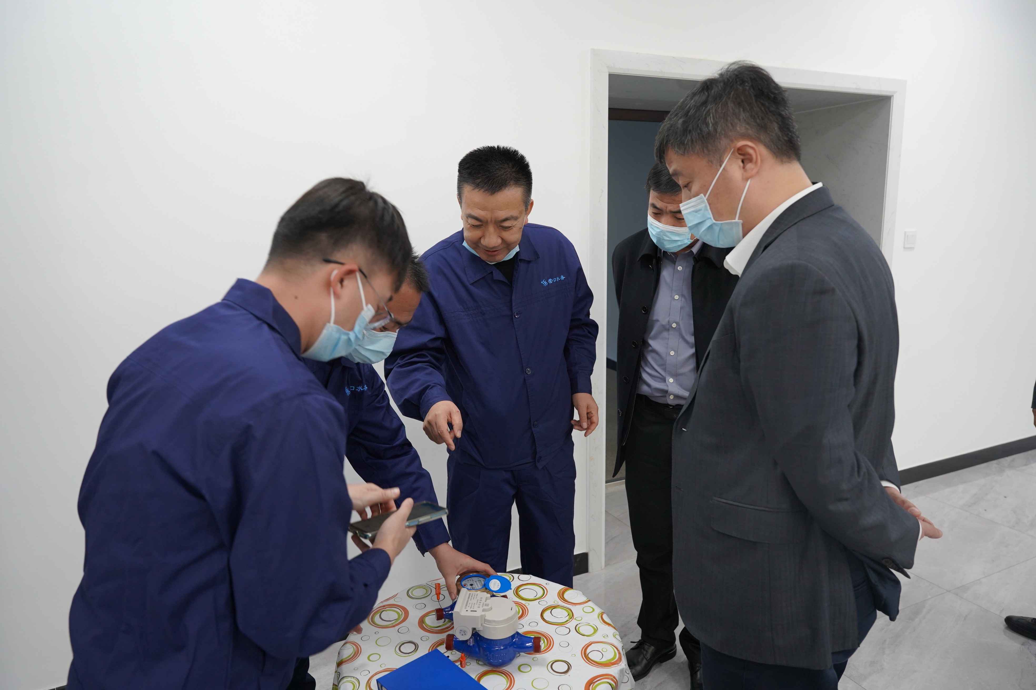 調(diào)研現(xiàn)場,水務(wù)集團(tuán)黨委書記、董事長張業(yè)維向市領(lǐng)導(dǎo)詳細(xì)匯報了智慧水務(wù)建設(shè)及使用情況,對水質(zhì)檢測點(diǎn)、漏損控制分區(qū)計量、手機(jī)抄表等進(jìn)行了講解,并現(xiàn)場用手機(jī)演示了“水務(wù)通”、“智水移動”兩款A(yù)PP的操作過程及實(shí)用功能。