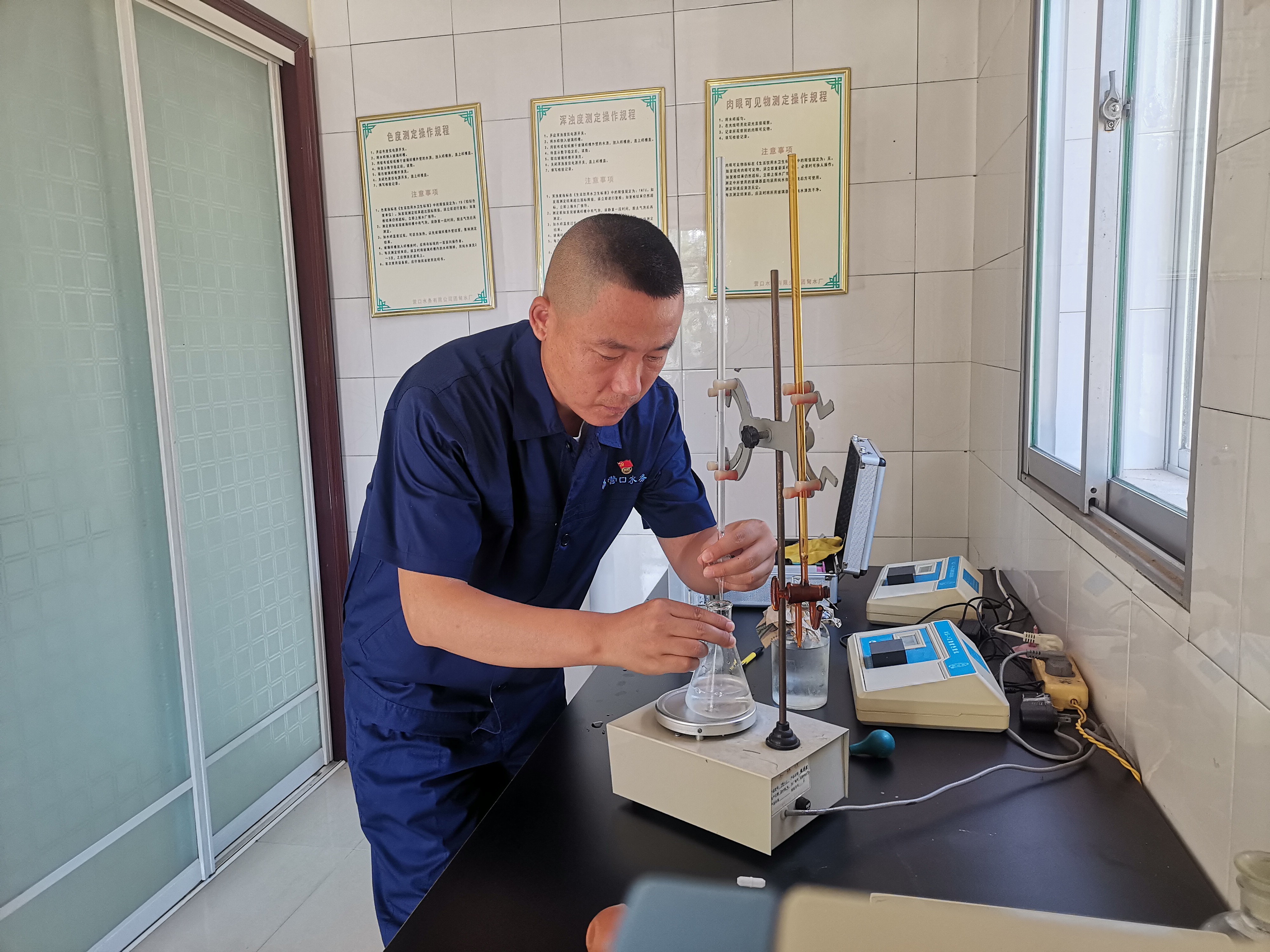 周洪鑫,團(tuán)甸水廠一名普通的水質(zhì)化驗員?!岸嗄陙?,他憑借對工作的滿腔熱忱、對水質(zhì)化驗工作的熱愛、腳踏實地的干勁,由一名學(xué)徒工成長為一名技術(shù)骨干。簡單的事情重復(fù)做,重復(fù)的事情用心做”,就這樣一直堅守一線,密切監(jiān)測水質(zhì)變化情況,適時調(diào)整出廠水、原水檢測頻率,增加濁度、余氯等檢測次數(shù),確保廣大市民飲用水安全和城市生活秩序。作為水廠一名共產(chǎn)黨員技術(shù)骨干,他充分發(fā)揮自己的組織協(xié)調(diào)才能,牢記服務(wù)之本,恪守服務(wù)之責(zé),辦好服務(wù)之事,正確面對得與失、表揚(yáng)和批評,充分發(fā)揮先鋒模范作用,為全廠各項工作的高效推進(jìn)起到了積極的促進(jìn)作用。