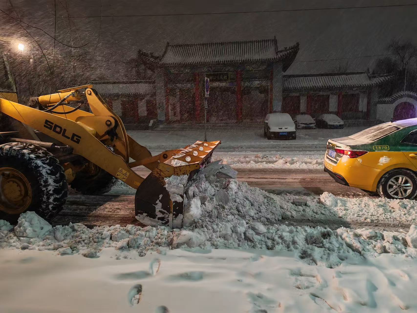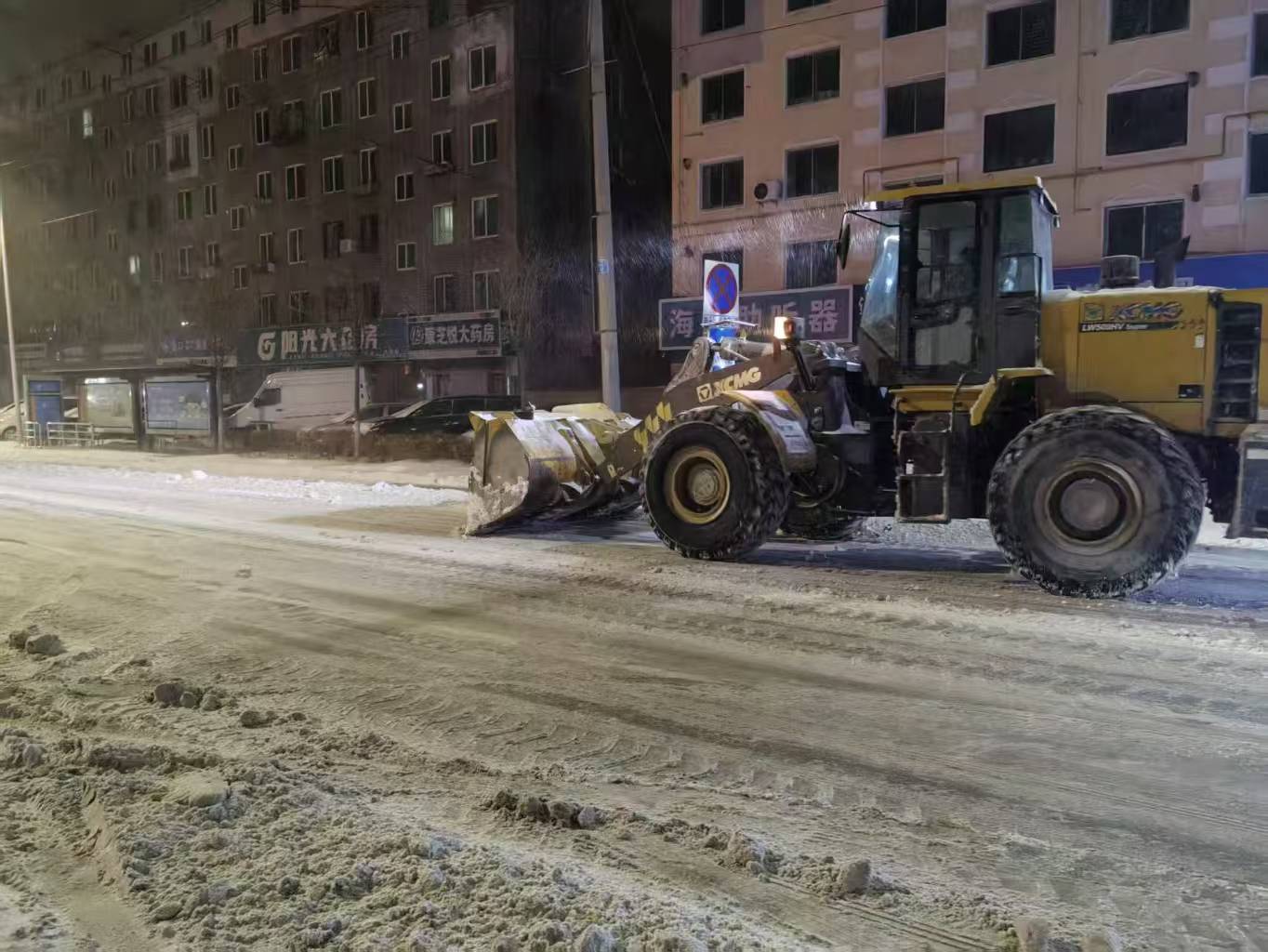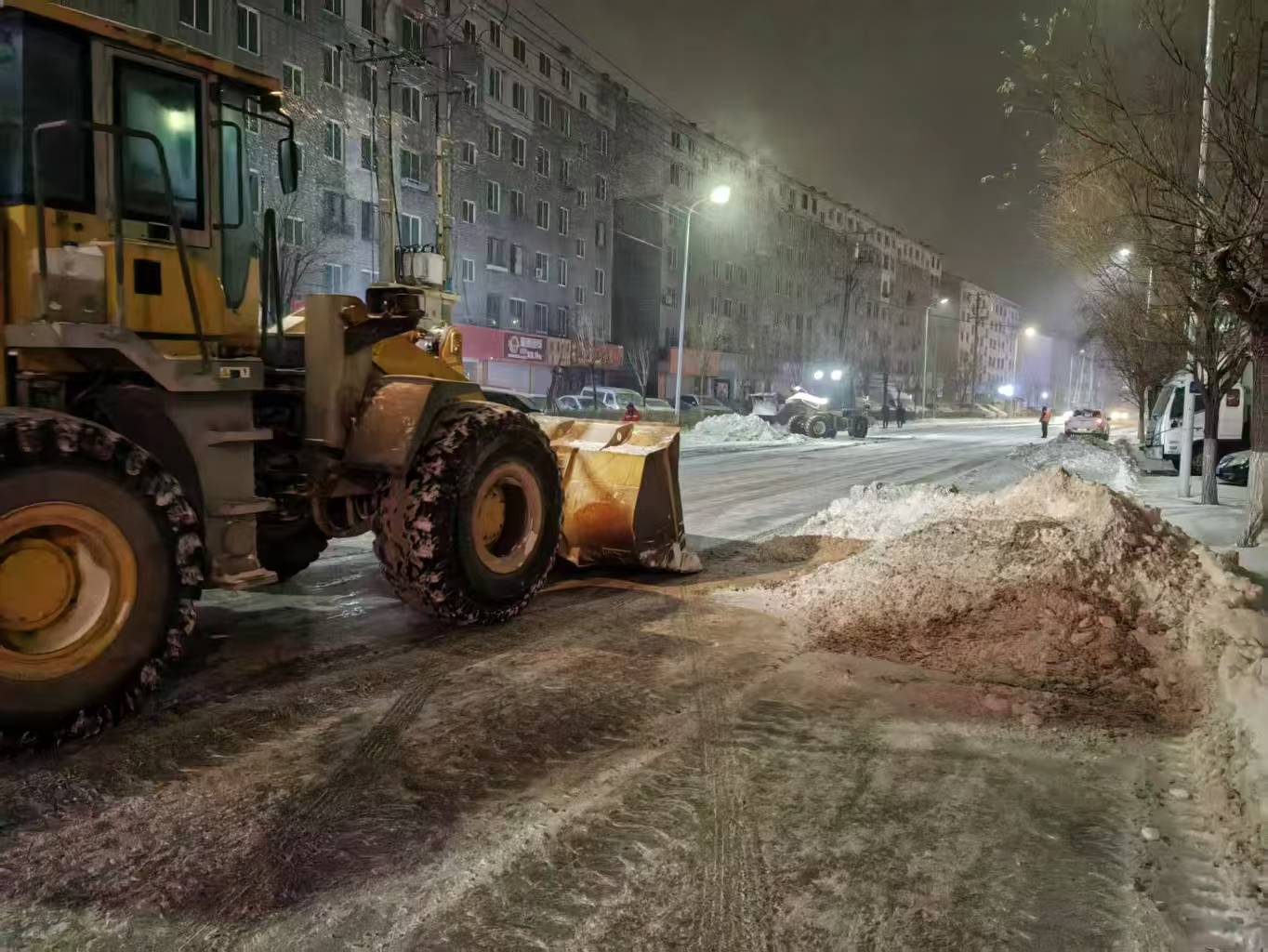雪情就是命令,保障即是責(zé)任。集團(tuán)組建80余人的應(yīng)急清雪隊(duì)伍,調(diào)配推雪鏟車(chē)8臺(tái),裝雪鏟車(chē)2臺(tái),運(yùn)雪車(chē)8臺(tái),做好全流程準(zhǔn)備。凌晨3點(diǎn),天色未亮、寒風(fēng)料峭,清雪隊(duì)伍已全員集結(jié)、整裝出發(fā)。機(jī)械鏟車(chē)開(kāi)道破冰,人工隊(duì)伍跟進(jìn)清掃,人機(jī)協(xié)同高效作業(yè),從新興大街東新路口到西環(huán)路口全力清除積雪,為市民出行掃清障礙。