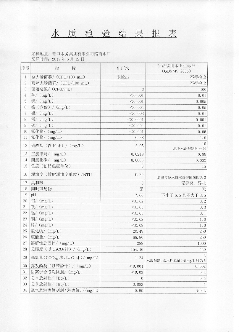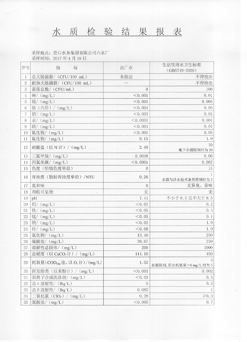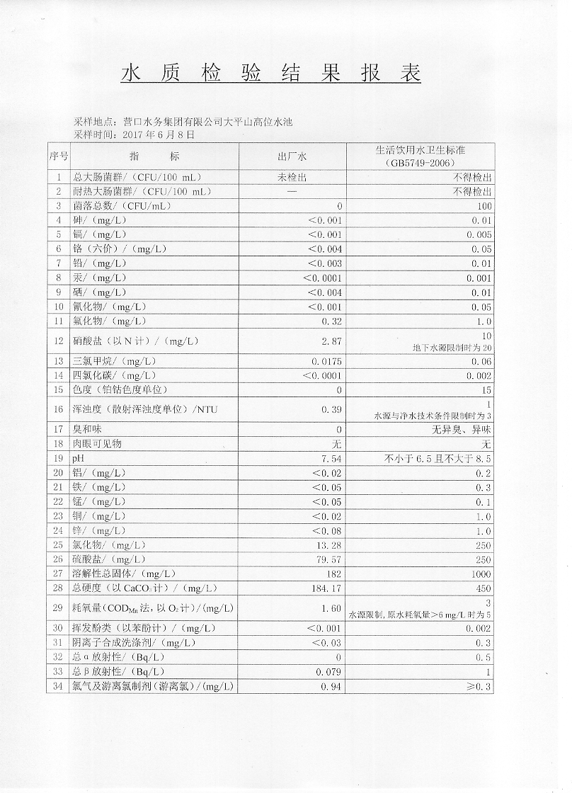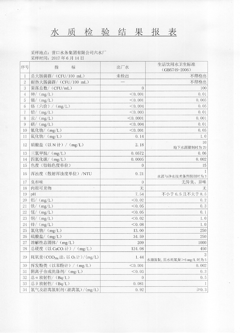 2017年二季度水質(zhì)檢驗(yàn)報(bào)告