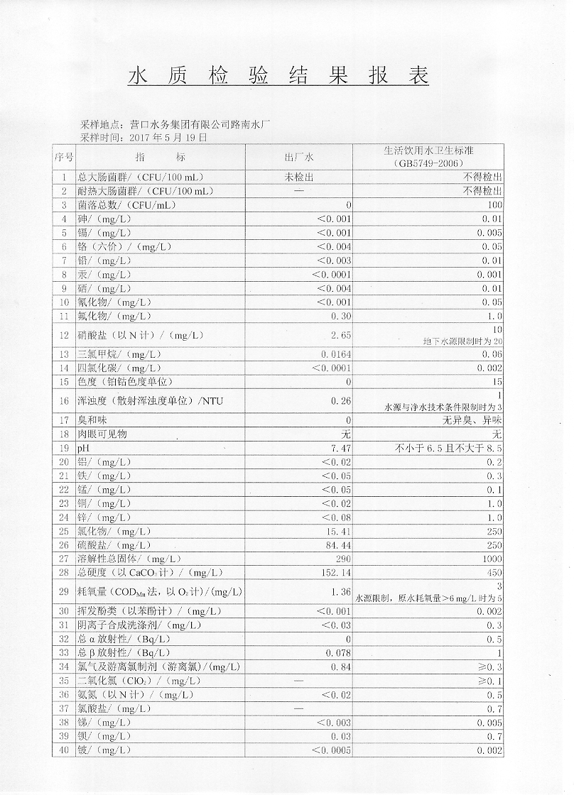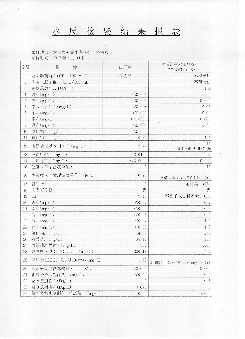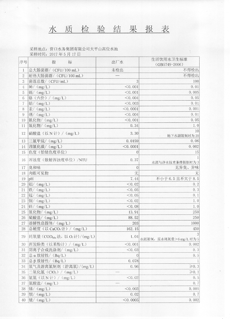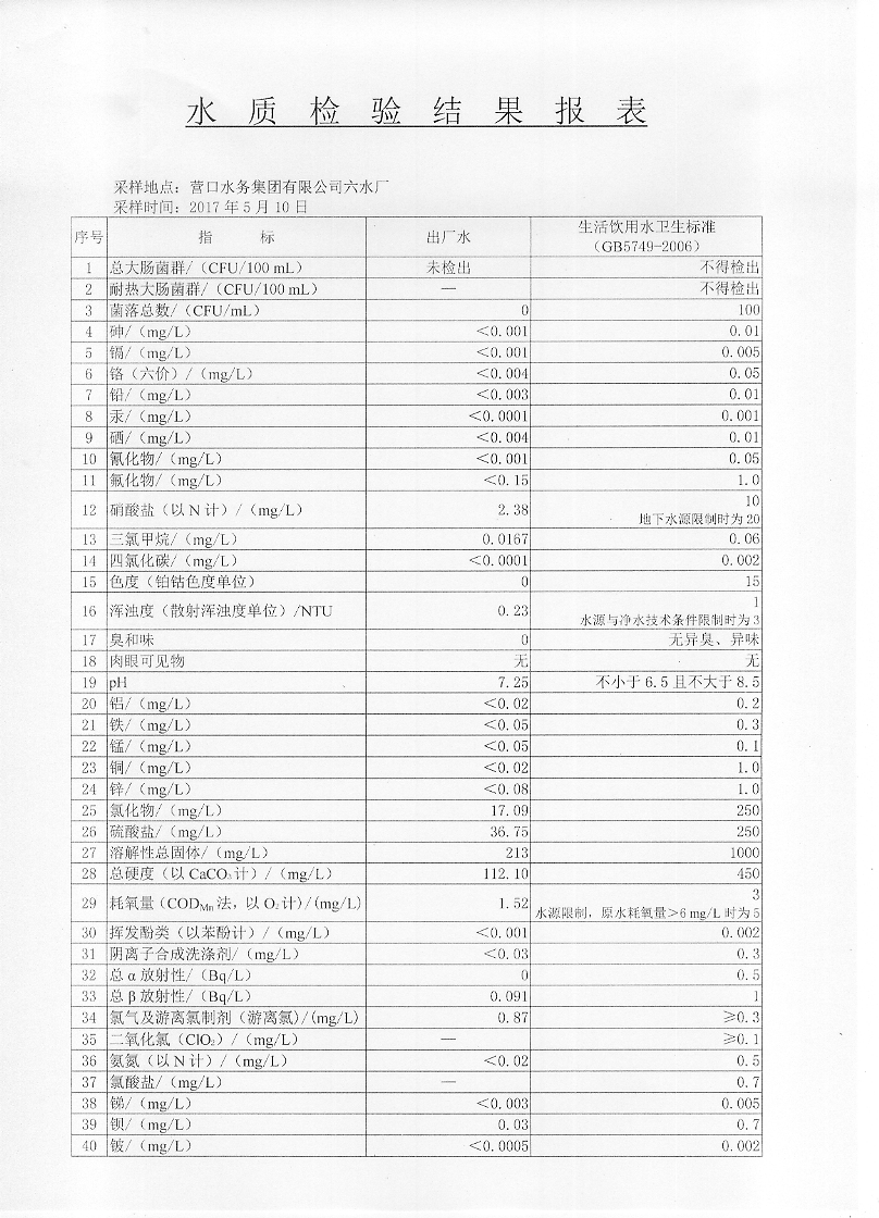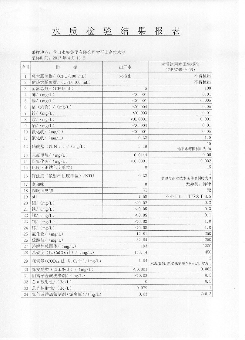 2017年二季度水質(zhì)檢驗(yàn)報(bào)告